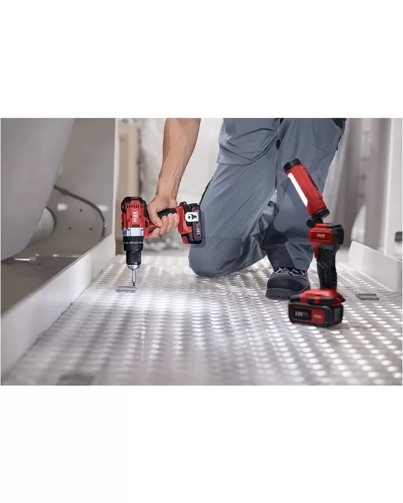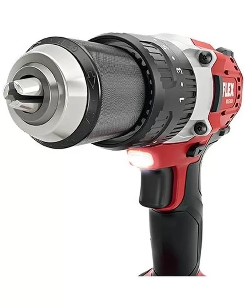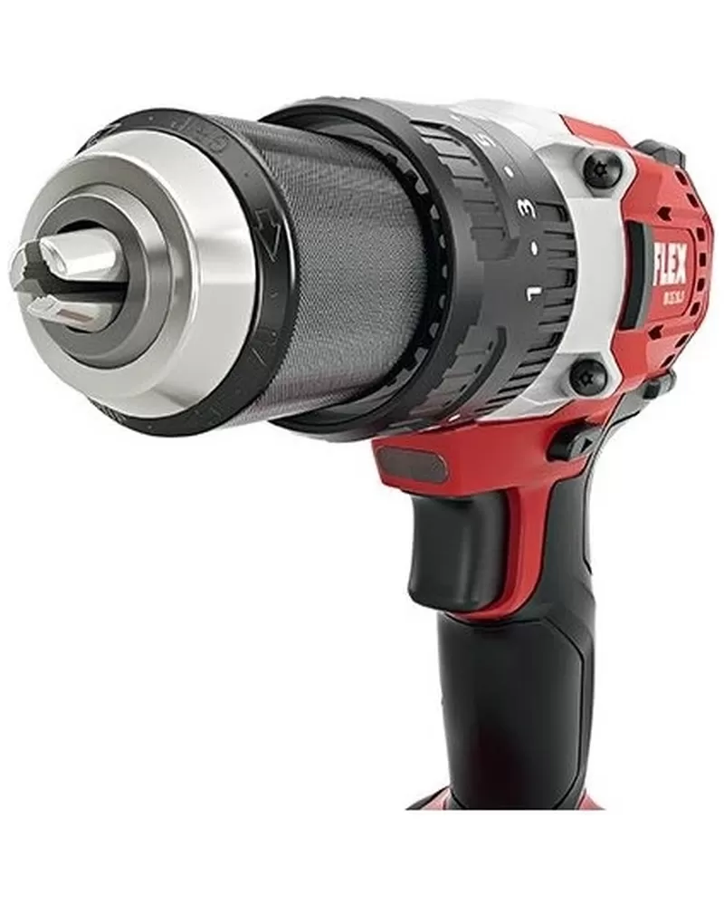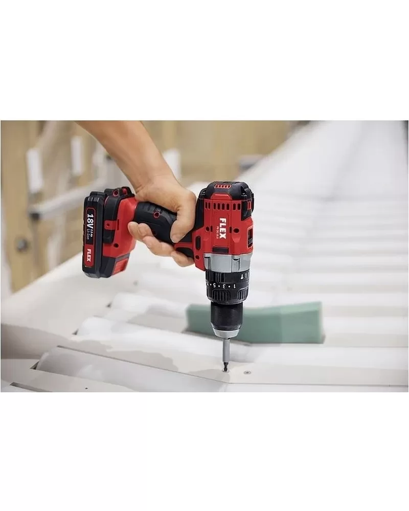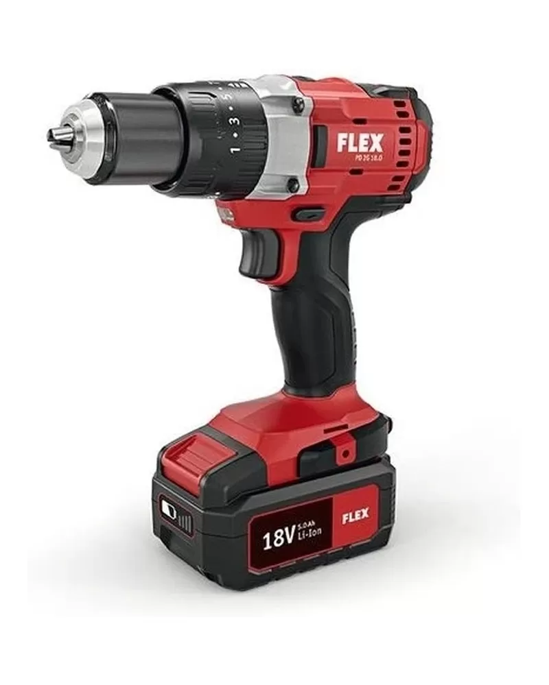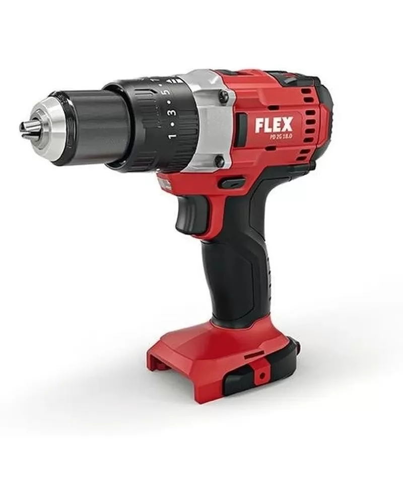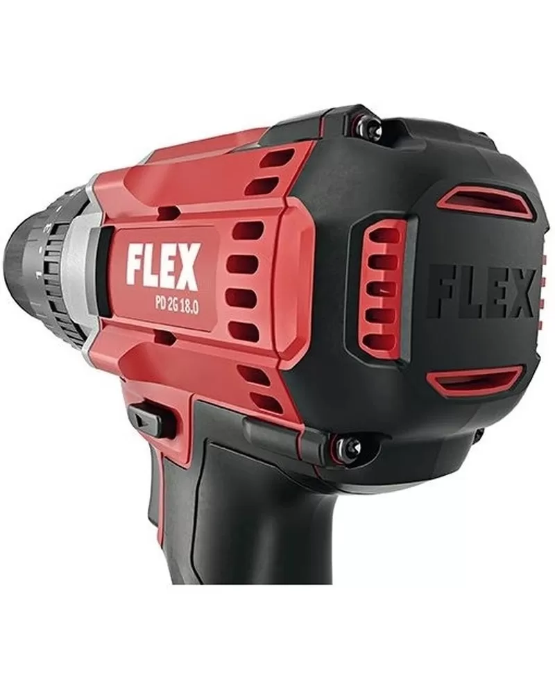 Dvourychlostní aku příklepová vrtačka FLEX PD 2G 18.0 pro provoz s 18 V akumulátory. Motor se 4-póly se vyznačuje dlouhou životností a vysokým výkonem.