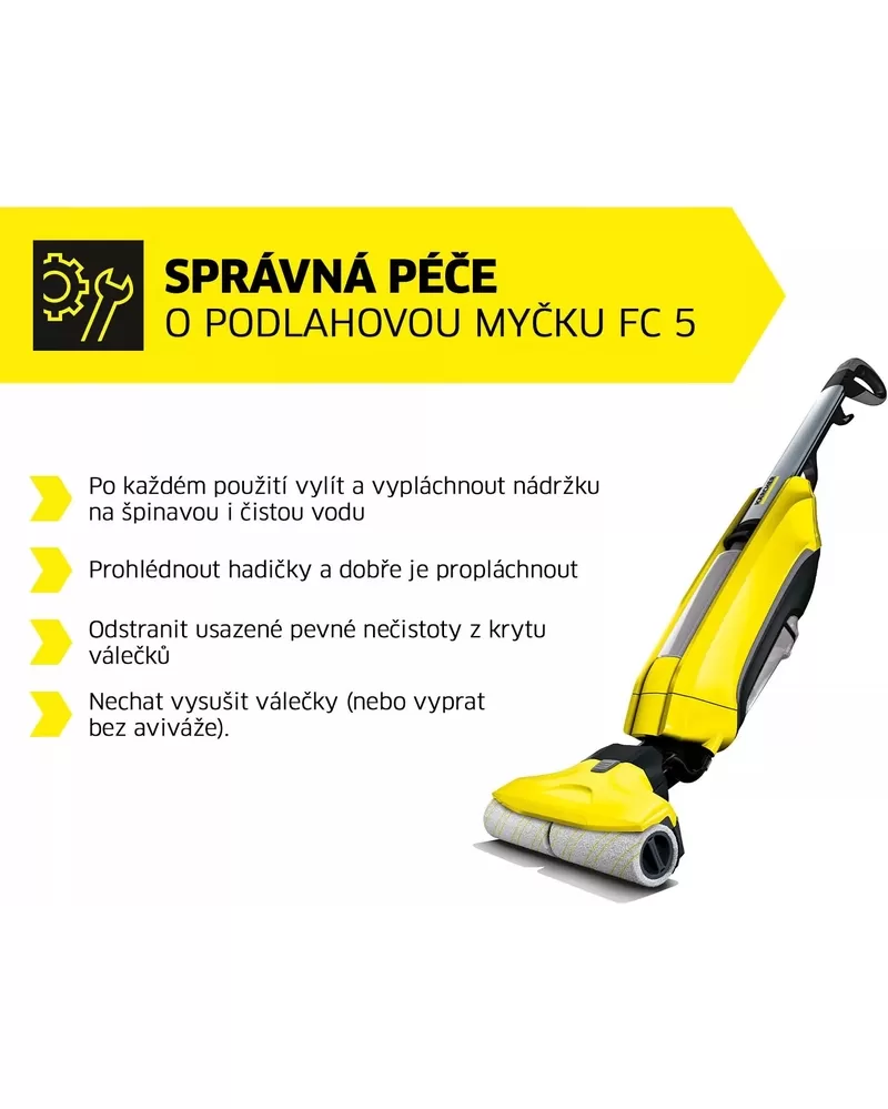 • Kärcher FC 5 používá kvalitní čistící válce z prvotřídního mikrovlákna pro dosažení perfektních výsledků čistění