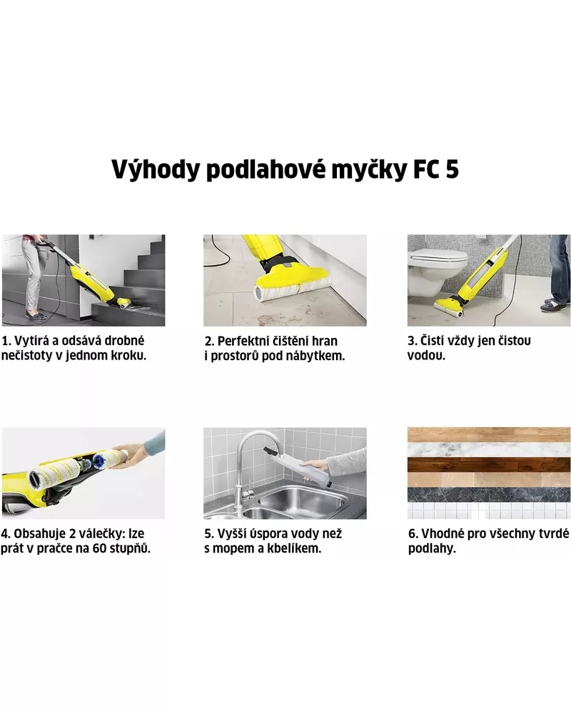 • Čističku FC 5 lze použít na každou tvrdou podlahu (dřevo, kámen i plast)