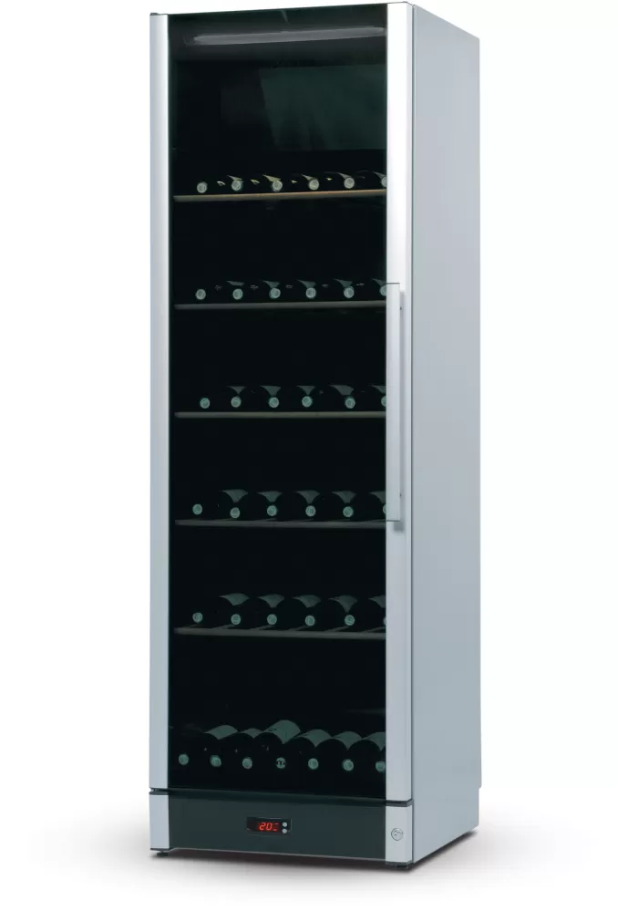 nastavitelná rozdílná teplota v horní i dolní části|provedení Silver|ventilované chlazení|automatické odtávání|digitální termostat|kouřové sklo dveří|čístící uhlíkový filtr|zámek|6 dřevěných roštů|osvětlení vnitřního prostoru|vnitřní provedení - kamenná čerň|zadní kolečka|kapacita 197 lahví 0,7 l|lze měnit otevírání dveří Jednodveřová chladicí skříň vhodná pro chlazení vína s nastavitelnou rozdílnou teplotou v horní a dolní části.