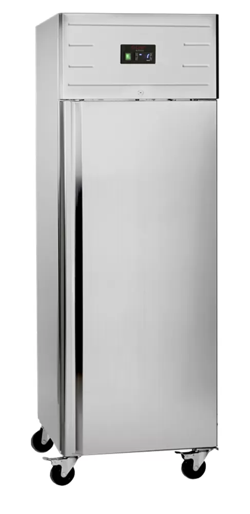Celonerezová chladicí skříň TEFCOLD GUC je ideální skříň do zázemí gastroprovozů. Je vhodná pro uskladnění ovoce, zeleniny, pekařského těsta, mléčných výrobků, salámů, masa, uzenin i ryb. Je možné měnit otevírání dveří (nutnst dokoupení levého pantu). Police GN 2/1 jsou nastavitelné s max. nosností 110 kg/m², pro snadné přemístění je chladicí skříň vybavena kolečky, 2 jsou s brzdou. Je možné také dokoupit nastavitelné nožičky. nerezové provedení|plné dveře, lze měnit otevírání|ventilované chlazení|digitální termostat a teplotní displej|zámek|samozavírací dveře|nastavitelné police GN 2/1|odolná kolečka|prověřená kvalita za příznivou cenu Chladicí skříň s plnými dveřmi