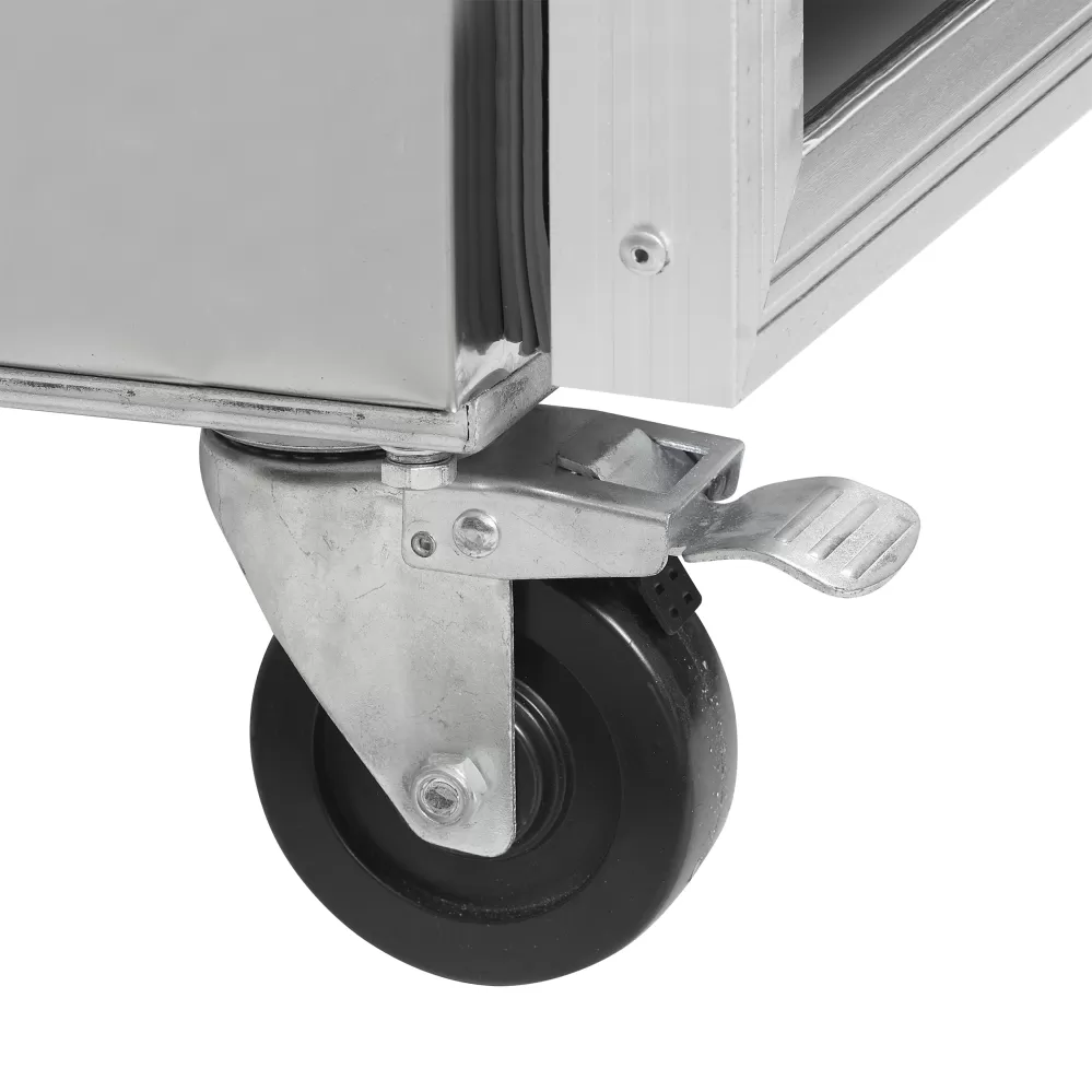 Úzká vertikální chladnička řady G je určena pro náročné kuchyňské prostředí. Je vybavena pevnými kolečky pro snadnou manipulaci a nerezovým pláštěm pro vysokou odolnost. Má nastavitelné police a je kompatibilní s gastronádobami GN1/1. Produkt s vynikajícím poměrem cena/výkon. prověřená kvalita za příznivou cenu|nerezové provedení|plné dveře, lze měnit otevírání|samozavírací dveře|nastavitelné police GN 1/1|digitální termostat a teplotní displej|ventilované chlazení|odolná kolečka|zámek|příslušenství: snadné otevírání nohou pro pravé nebo levé otevírání dveří Tenký chladicí box z nerezové oceli pro gastronomické provozy