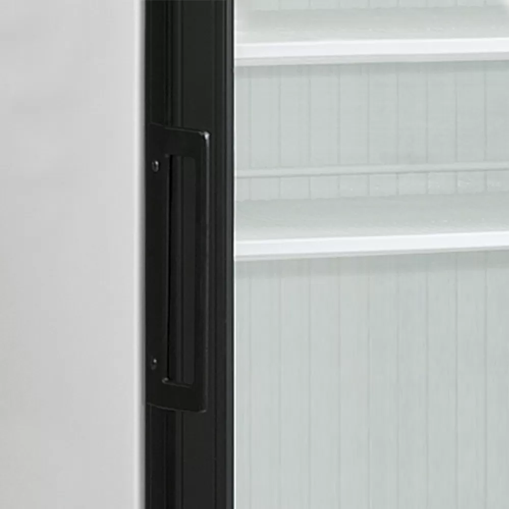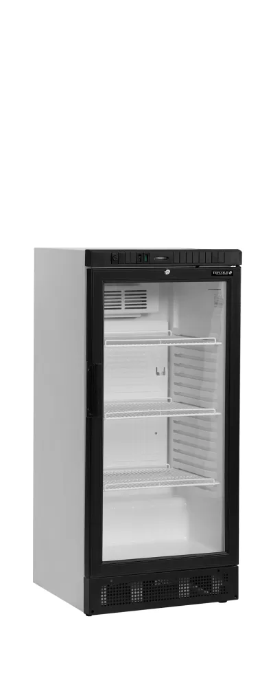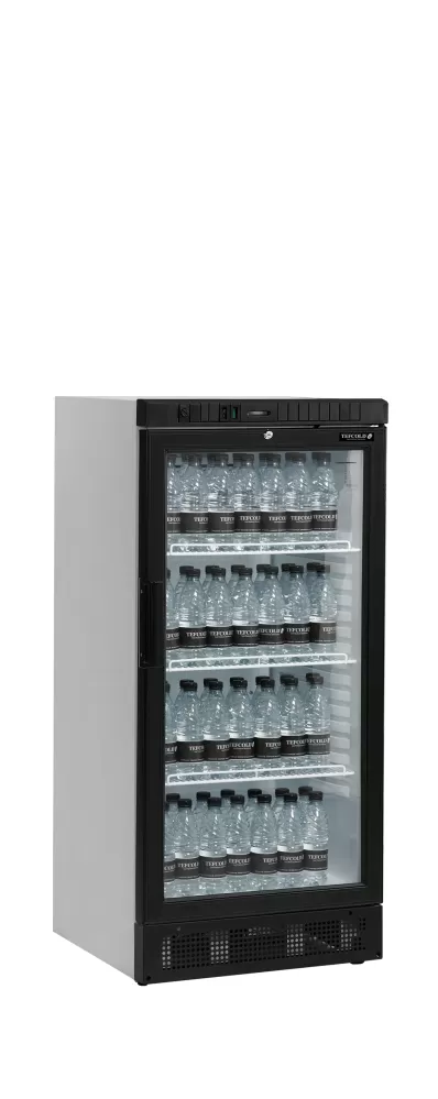 Řada chladicích skříní SCU nabízí velký výstavní a úložný prostor. Dodává se v několika velikostech, se světelným reklamním panelem nebo bez něj. Jedná se o bílou skříň s černými prosklenými dveřmi s hliníkovým rámem, u kterých lze změnit směr otevírání, s nastavitelnými policemi a vnitřním LED osvětlením pro optimální prezentaci výrobků. Chladicí systém s pomocným ventilátorem zajišťuje rovnoměrné chlazení uvnitř celé skříně. lze měnit otevírání dveří|nastavitelné police|nastavitelné nožky|vnitřní LED osvětlení|prosklené křídlové dveře s hliníkovým rámem|chlazení s pomocným ventilátorem|zámek Chladicí skříň s prosklenými dveřmi