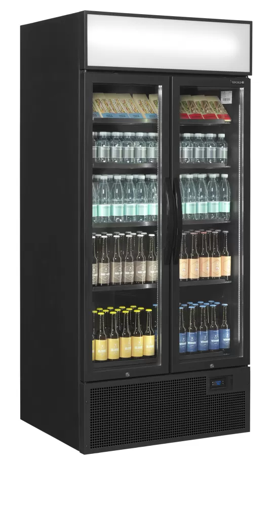 Řada TEFCOLD FSC dvoudveřových a třídveřových chladicích skříní s osvětleným reklamním panelem nabízí vysokou kvalitu provedení za příznivou cenu. Vyberte si mezi chladicími skříněmi v bílém nebo černém provedení s černými prosklenými dveřmi s hliníkovým rámem. Dveře máme v nabídce křídlové (H) nebo posuvné (S). Police jsou nastavitelné, řada FSC tak představuje flexibilní řešení pro prezentaci vašeho prodávaného zboží. Mnoho modelů je k dispozici také bez reklamního panelu (řada FS). cca o 58 % energeticky účinnější než předchozí řada FSC|reklamní panel s LED osvětlením|vnitřní svislé LED osvětlení|černý interiér a exteriér|nastavitelné police|ventilované chlazení|prosklené křídlové dveře s hliníkovým rámem|nastavitelné nožky s pojezdovými válečky vzadu|digitální ukazatel teploty Chladicí skříň dvoudveřová prosklená s křídlovými dveřmi