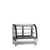 Vitrína je vhodná pro umístění zákusků, dortů, sendvičů či baget. Výrobky k prodeji lze umístit na dvou pevných roštových policích a na spodní výstavní ploše. Oblé přední sklo, prosklené boky a LED osvětlení zajišťují ideální viditelnost prodávaného zboží. nerezová ocel|dvojité sklo|zadní prosklené posuvné dveře|nastavitelné nožky|oblé předné sklo|vnitřní LED osvětlení|ventilované chlazení Pultová chladicí vitrína, přední oblé sklo (náhrada za NORDline RTW 160).