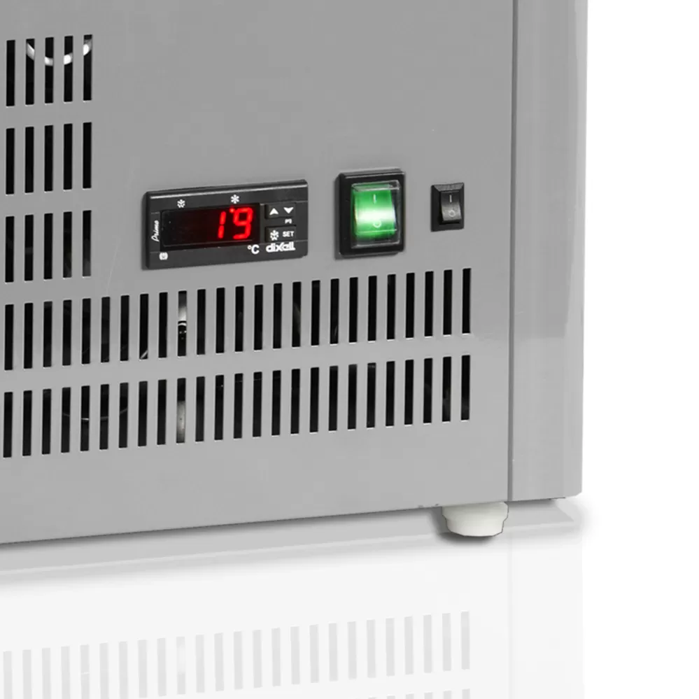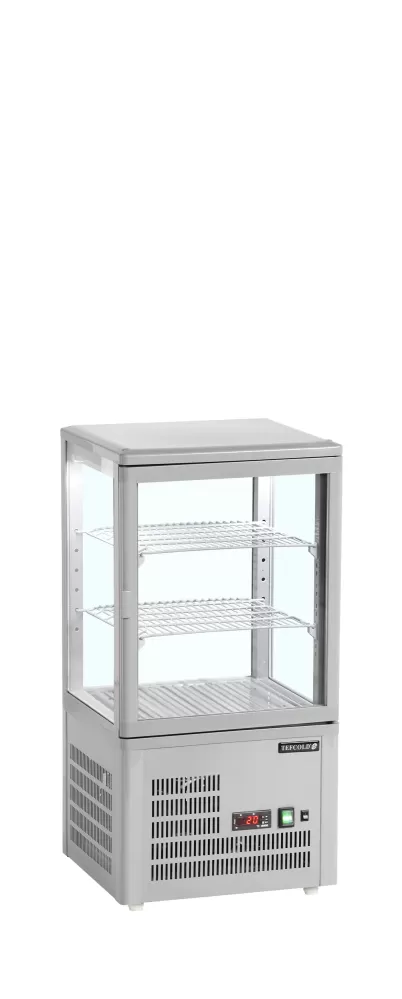 Tyto malé vitríny UPD jsou skvělé pro vystavení a prodej potravin tam, kde je potřeba šetřit s místem a kde má být zároveň zboží na očích. Vitríny TEFCOLD UPD jsou k dispozici v černé a šedé barvě a kromě stolních modelů jsou velmi oblíbené také samostatně stojící velké panoramatické vitríny např. UPD 400 v chladicí nebo mrazicí verzi. dvojité izolační sklo na čtyřech stranách|nastavitelné roštové police|prosklené dveře|šedá povrchová úprava|nastavitelné nožky|ventilované chlazení|vnitřní LED osvětlení Stolní neboli pultová malá chladicí vitrína vhodná pro umístění na stůl nebo bar