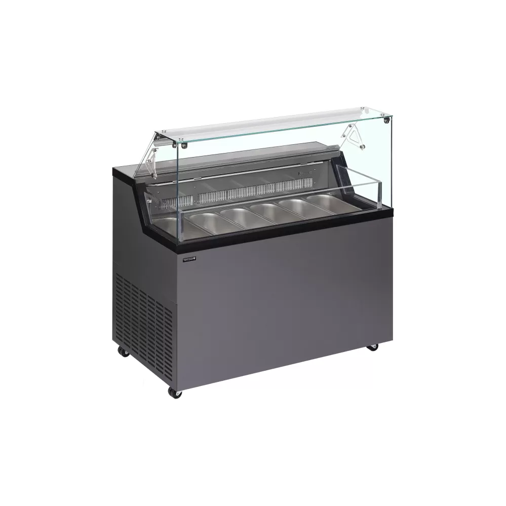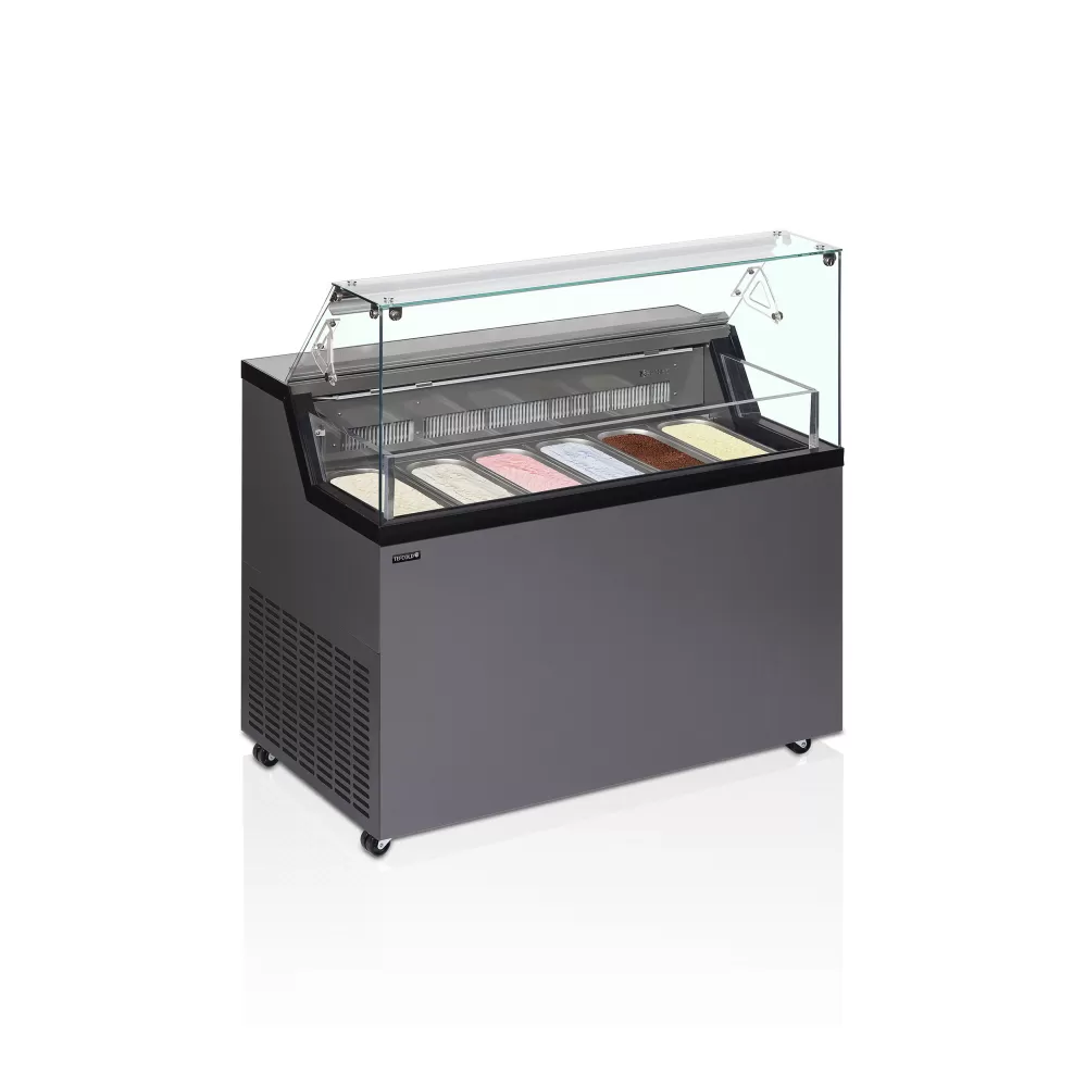 Distributory zmrzliny řady Mirabella představují krok kupředu v designu i prezentaci produktů, což pomáhá přilákat zákazníky. Distributory Mirabella jsou samozřejmě vhodné pro standardní gastronádoby na zmrzlinu GN 360x165x120 mm (nejsou součástí balení) a pod vystavenou zmrzlinou se nachází úložný prostor pro snadné doplňování nejprodávanějších příchutí. rovné přední sklo|vhodné pro 5l vaničky na zmrzlinu (nejsou součástí)|úložný prostor pod koši|vnitřní LED osvětlení s vypínačem|statické chlazení|digitální termostat a teplotní displej|plně automatický provoz|výklopné zadní krytí|kolečka Distributor kopečkové zmrzliny - vitrína na zmrzlinu