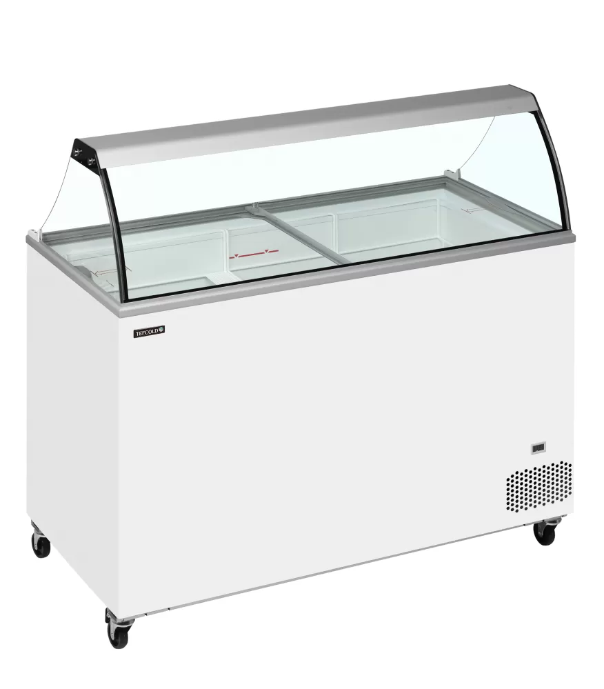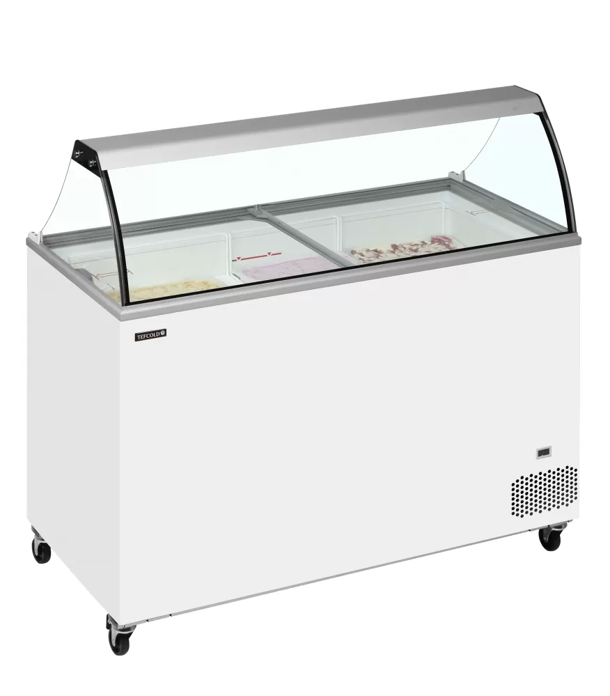 Distributory IC SC SO mají rovná posuvná víka, která chrání prostor se zmrzlinou před únikem chladu, která jsou navíc opatřena zámkem. Koše pro GN na zmrzlinu 360x165x120 mm nejsou součástí. Jejich skladba se liší dle délky distributoru. Model 201: 1x koš 3sekční (kód 14704), model 301:1x koš 3sekční (kód 14704) + 1x koš 2sekční (kód 14703), model 401: 1x koš 3sekční (kód 14704) + 2x koš 2sekční (kód 14703). přední oblé sklo|rovná posuvná prosklená víka se zámkem|úložný prostor pod koši|ideální pro reklamní polep|digitální teploměr|kolečka s brzdou|klimatická třída 5 - vysoký výkon i v teplém prostředí|Na objednávku: koše vhodné pro GN na zmrzlinu Distributor kopečkové zmrzliny