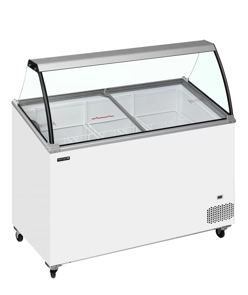 Řada distributorů zmrzliny IC SC SO nabízí skvělou kvalitu za výhodnou cenu. Tyto distributory mají rovná posuvná víka, která chrání prostor se zmrzlinou před únikem chladu, která jsou navíc opatřena zámkem. Ochraný kryt má oblíbený oblý tvar a díky svému jednoduchému designu je distributor ideální pro reklamní polep. Všechny modely této řady jsou optimalizovány pro koše, které pojmou 5l vaničky na zmrzlinu. přední oblé sklo|nakloněná posuvná víka se zámkem|úložný prostor pod koši|kolečka s brzdou|klimatická třída 5 - vysoký výkon i v teplém prostředí|Na objednávku: koše vhodné pro GN na zmrzlinu Distributor kopečkové zmrzliny