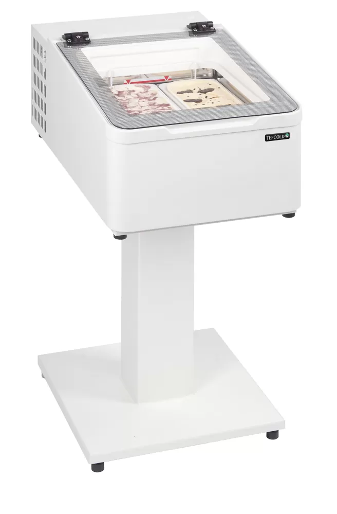 Řada TEFCOLD ICE je ideální pro podniky s omezeným prostorem, které však chtějí maximalizovat prodej kopečkové zmrzliny. Distributor zmrzliny ICE je navržen pro pohodlné umístění na pracovní desku či pult a je k dispozici v konfiguraci se dvěma nebo třemi vaničkami. Na vyžádání je možné objednat také vyvýšený podstavec a zásobník na nanuky. stolní model|náklon výstavní plochy pro lepší prezentaci|vhodné pro 5l vaničky na zmrzlinu (nejsou součástí)|Ideální pro bufety|snadný přístup k produktům|rovné výklopné prosklené víko|statické chlazení|nastavitelné nožky|na objednávku zásobník na nanuky Pultový distributor kopečkové zmrzliny na 2 vaničky