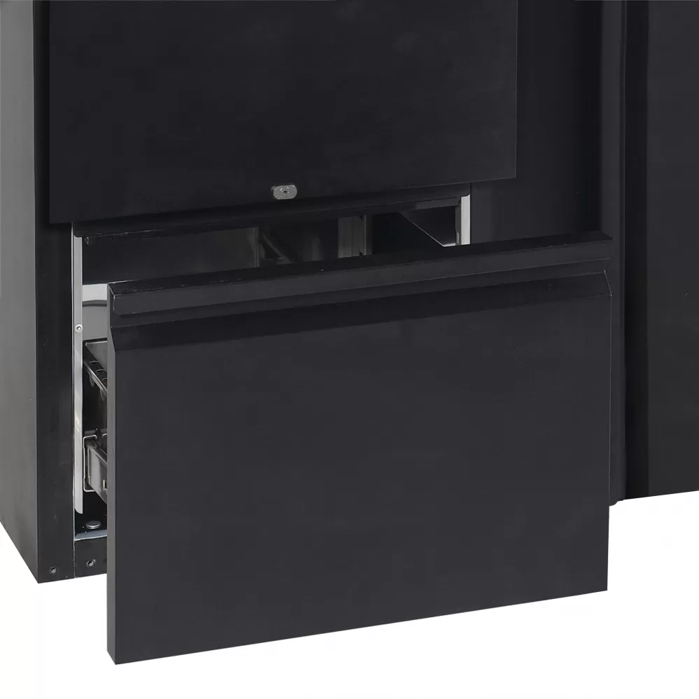 Chladicí minibary TEFCOLD CBC jsou oblíbené pro svůj elegantní vzhled, robustní poctivé provedení a variaci možností, co se velikosti týče. Křídlové dveře jsou samozavírací, plné a vyhřívané, k dispozici jsou také s prosklenými dveřmi (označení G jako "glass" - sklo). Vnitřní prostor je krásně viditelný díky LED osvětlení, které je u moderních minibarů samozřejmostí. Výšku minibaru je možné regulovat pomocí nastavitelných nožek. odolné zařízení do náročného provozu|samozavírací dveře|nerezový interiér|nastavitelné nerezové police SS304|nastavitelné nožky|ventilované chlazení|zásuvky jsou volitelné Minibar se třemi plnými křídlovými dveřmi, barva černá