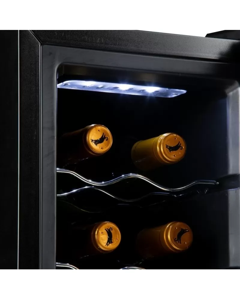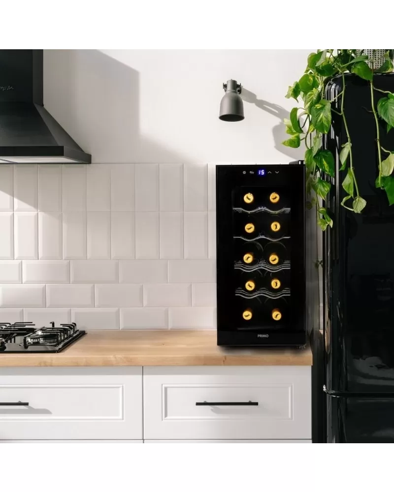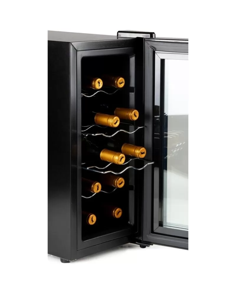 Domácí vinotéka kompaktních rozměrů a kapacitou na 10 lahví představuje zlatou střední cestu pro všechny milovníky vína v pohodlí domova. Víno z vinotéky bude vždy vychlazené na správnou teplotu, kterou si lze jednoduše nastavit i sledovat na podsvíceném LED displeji. Svým elegantním designem s vnitřním LED bílým osvětlením doplní váš interiér.