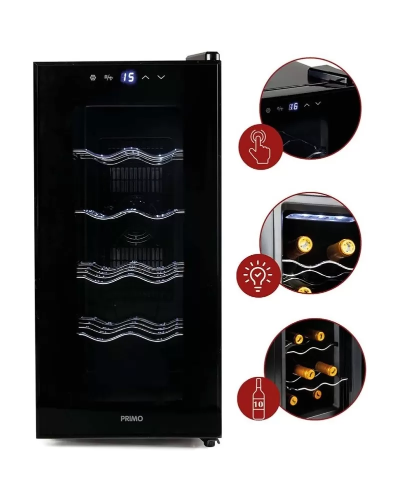 Domácí vinotéka na 10 lahví černá PRIMO PR170WK Vychutnejte si dokonale vychlazenou sklenku vína díky vinotéce Primo PR170WK. Domácí vinotéka… Celý popis