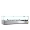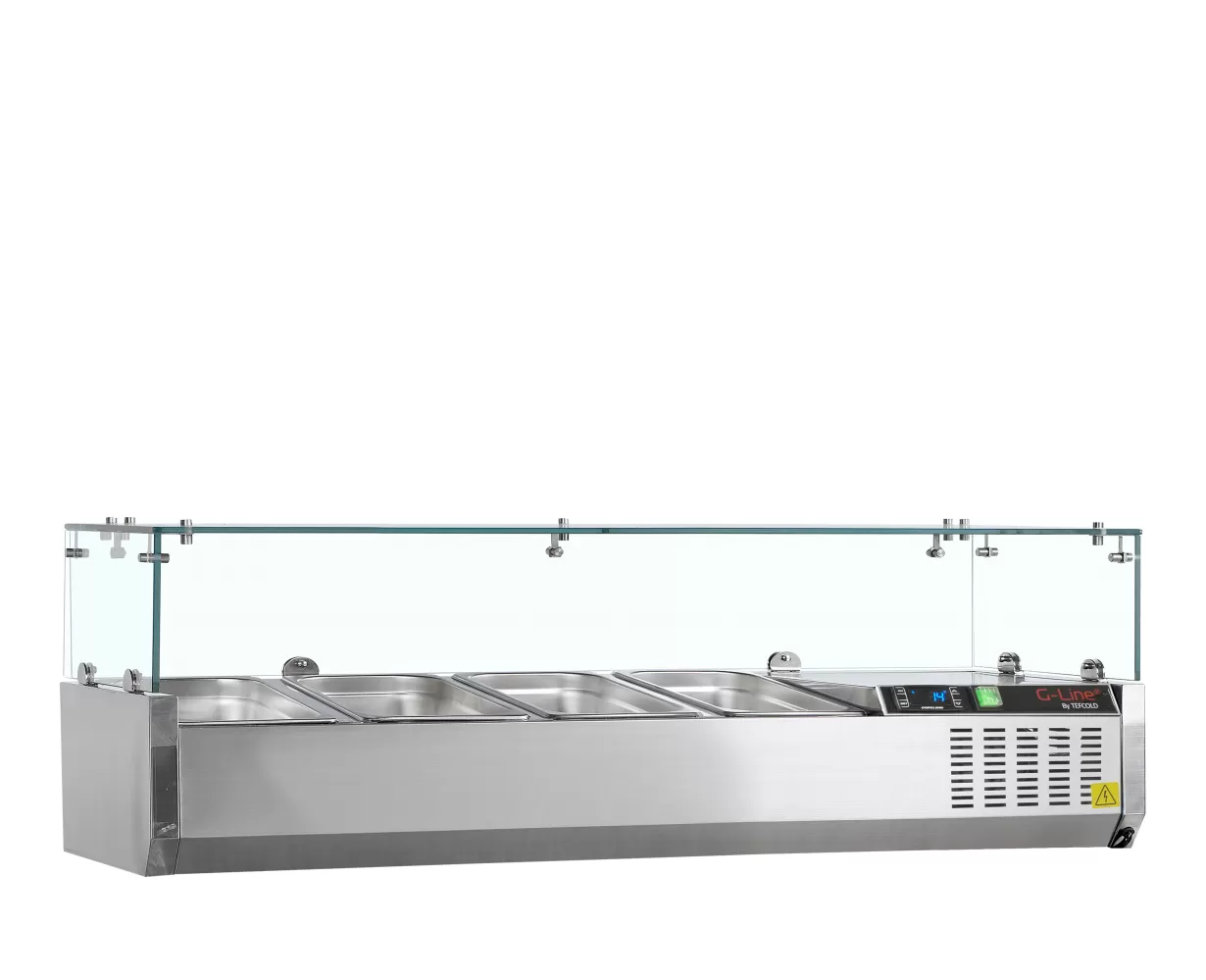 Chladicí nástavba na gastronádoby GN 1/4 vhodná pro pizzerie, rychlá občerstvení či menší provozovny. Gastronádoby nejsou součástí. GVC33-120: 5 x GN 1/4 GVC33-150: 7 x GN 1/4 GVC33-180: 9 x GN 1/4 GVC33-200: 10 x GN 1/4 nerezová ocel|skleněné krytí na ochranu potravin|lze vložit GN1/4 (nejsou součástí balení)|digitální termostat a teplotní displej|statické chlazení|nastavitelné nožky Stolní chladicí nástavba GN1/4