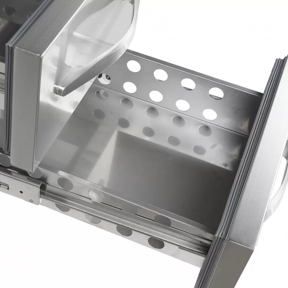 Řada UC chladicích podestaveb se zásuvkami je určena pro profesionální kuchyně a disponuje zásuvkami s rozměry GN1/1. Chladničky jsou vyrobeny z nerezové oceli SS304 a jsou k dispozici se 4, 6 nebo 8 zásuvkami. Systém s ventilovaným chlazením zajišťuje rychlé snížení teploty a její rovnoměrné rozložení. Nastavení teploty lze upravit pomocí elektronického termostatu. K dispozici jsou také podobné modely s dvířky místo zásuvek. nerezová ocel|automatické odmrazování|zásuvky GN 1/1|nastavitelné nohy|ventilované chlazení Chladicí podestavba se zásuvkami