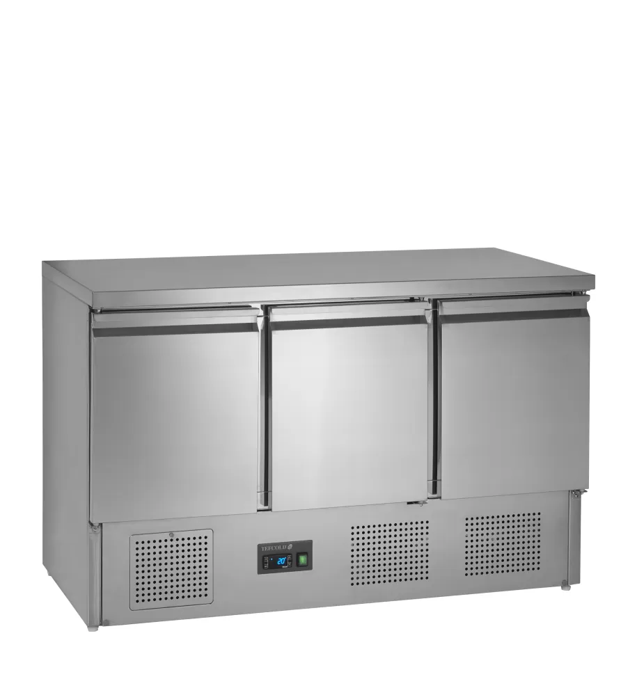 Řada SA chladicích saladet je vyrobena v celonerezovém provedení SS304 s plnými dveřmi. Vnitřní prostor obsahuje roštovou polici GN1/1 (1x ve dveřích). Model je dodáván bez GN. Na přání je také možné instalovat set zásuvek 1/2-1/2 s kapacitou GN 1/1. Saladety jsou k dispozici v různých velikostech. nerezová ocel|digitální termostat a teplotní displej|automatické odmrazování|nastavitelné nožky|chlazení s pomocným ventilátorem Chladicí saladeta s pracovní deskou