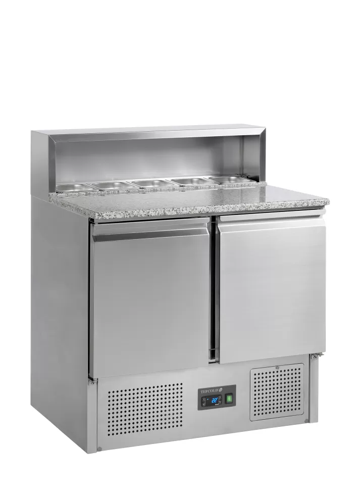 Řada PT chladicích pizza stolů je vyrobena z nerezové oceli SS304. Má žulovou desku, která je pro přípravu pizzy ideální, protože žula zůstává chladná a těsto se na ni méně lepí. Stoly jsou k dispozici v několika velikostech se 2 nebo 3 dvířky. Také je možné pořídit si přizpůsobenou variantu se zásuvkami. Ve vrchní části je možné vložit GN 1/6 x 5 ks pro model PT 920 a 8 ks GN 1/6 pro model PT 930. GN nejsou součástí. nerezová ocel|žulová pracovní deska|chladicí vana pro gastronádoby GN1/6|automatické odmrazování|dveře|nastavitelné nožky|chlazení s pomocným ventilátorem Chladicí pizza stůl GN1/1