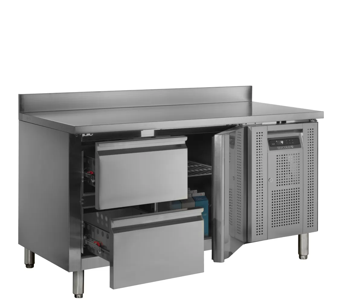 Řada chladicích stolů CK z nerezové oceli SS304 je určena pro profesionální kuchyně, a proto má rozměry GN1/1. Stoly jsou k dispozici v několika velikostech a můžete si vybrat mezi plnými dvířky a zásuvkami. Dále máte výběr mezi modely s odnímatelnou horní deskou se zadní deskou, nebo bez ní. Všechny mají ventilované chlazení, které zajišťuje rovnoměrnou a stálou teplotu. nerezová ocel|automatické odmrazování|odstranitelná pracovní deska se zadním lemem|digitální termostat a teplotní displej|nastavitelné nohy|zásuvky GN 1/1|ventilované chlazení Chladicí stůl se zásuvkami a policemi GN1/1