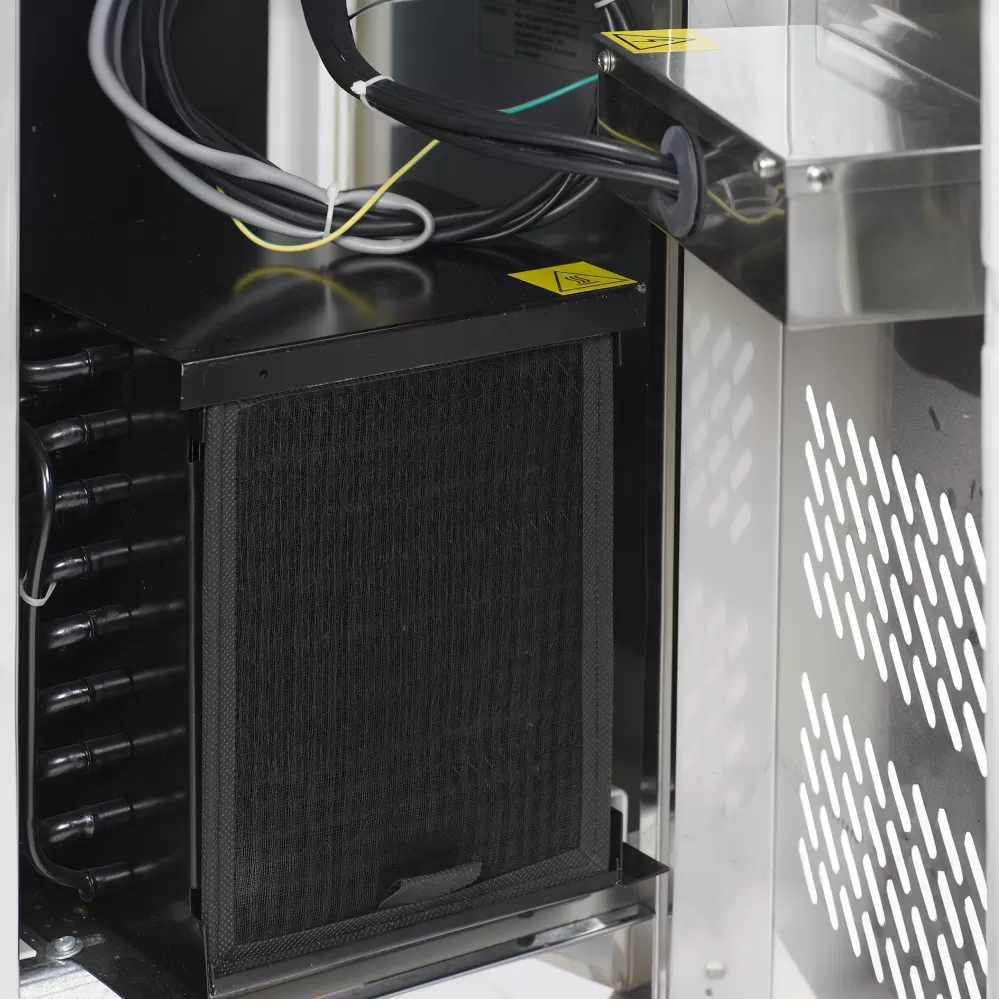 Řada chladicích stolů CK-X z nerezové oceli SS304 je určena pro profesionální kuchyně, a proto má rozměry GN1/1. Stoly jsou k dispozici v několika velikostech a můžete si vybrat mezi modely s horní deskou se zadním lemem nebo bez lemu. Všechny mají ventilované chlazení, které zajišťuje rovnoměrnou a stálou teplotu. Ovladač disponuje funkcí Bluetooth pro snadné monitorování prostřednictvím aplikace - Applica nebo Controlla. nerezová ocel|ventilované chlazení|ovladač s funkcí Bluetooth a konektivitou NFC|export dat v souladu s HACCP|automatické odmrazování|samozavírací dveře|nastavitelné nohy Chladicí stůl z nerezové oceli se zásuvkami a policemi GN1/1