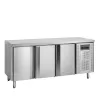 Řada chladicích skříní BK je vyrobena speciálně pro pekárny, a proto má rozměry podle evropské normy s vodicími lištami pro pekařské plechy. Tato řada zahrnuje chladicí pulty i chladicí skříně. Chladicí skříň je vyrobena z vysoce kvalitní nerezové oceli SS304 vhodné pro gastronomii. Chlazení s ventilací zajišťuje, že ingredience zůstanou čerstvé, a teplotu lze snadno nastavit na digitálním termostatu. nový design|nerezová ocel|rozměry podle evropské normy|ventilované chlazení|automatické odmrazování|odstranitelná pracovní deska|samozavírací dveře|nastavitelné nohy Chladicí stůl vhodný pro pekárny 400x600, 3 dveře