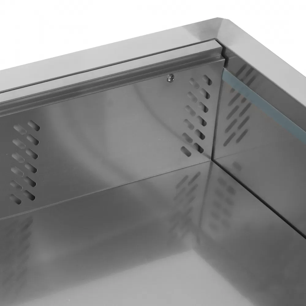 Řada CW /V stolních chladicích van nabízí bezpečný způsob prezentace chutných pokrmů například v bufetu. Lze je použít také pro chlazení lahví s nápoji. V je označení pro ventilované chlazení, které zajišťuje rovnoměrnější distribuci chladu ve vaně. Vany jsou vyrobeny z nerezové oceli SS304, díky které je údržba snadná. Vany CW jsou vhodné pro vestavění do vašeho pultu a jsou určeny pro standardní rozměry gastronádob GN1/1 x 150 mm (max), gastronádoby nejsou součástí. nerezová ocel|elektronický termostat |lze vložit GN1/1 (nejsou součástí balení)|ventilované chlazení Stolní chladicí vana