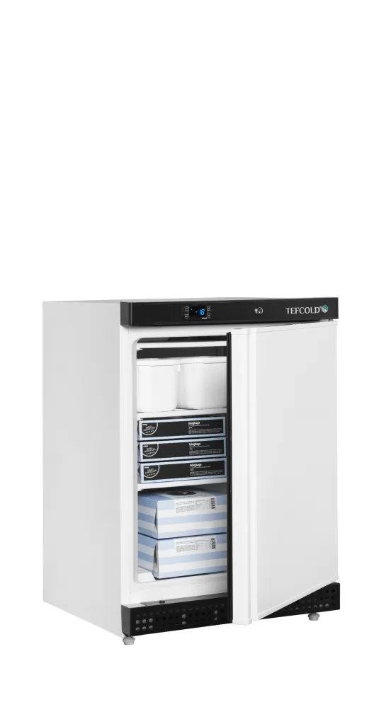 Řada mrazicích skříní UF nabízí vysokou kvalitu a spolehlivost za konkurenceschopnou cenu. Dodává se v různých velikostech, které mají čistý design s integrovanou rukojetí po celé délce dveří. Standardní mrazicí skříň je vybavena pevnými policemi, které pomáhají zajistit rovnoměrnou teplotu v celé skříni. Teplotu nastavíte na snadno ovladatelném digitálním displeji termostatu. integrované madlo|plné dveře, lze měnit otevírání|elektronický termostat |pevné chlazené police|nastavitelné nožky s pojezdovými válečky vzadu Mrazicí skříň s plnými dveřmi, bílá barva