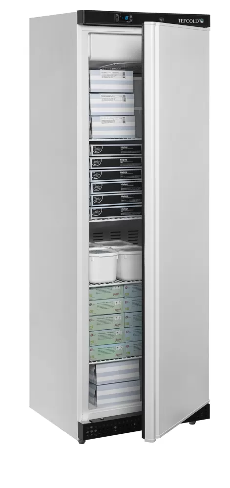 Řada mrazicích skříní UF-V se dodává v různých velikostech. Mrazicí skříň má účinný ventilační chladicí systém, který zajišťuje rovnoměrnou teplotu v celé skříni. Teplotu nastavíte na snadno ovladatelném digitálním displeji termostatu. Mrazničku si můžete přizpůsobit svým potřebám díky nastavitelným policím. Odmrazování probíhá automaticky. integrované madlo|plné dveře, lze měnit otevírání|elektronický termostat |automatické odmrazování|nastavitelné police|ventilované chlazení|zámek|nastavitelné nožky s pojezdovými válečky vzadu