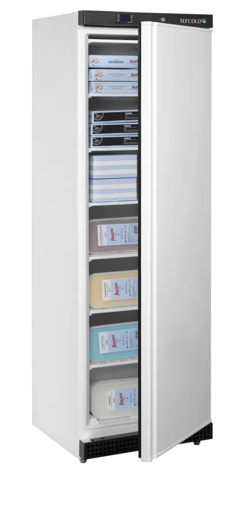 Řada mrazicích skříní UF nabízí vysokou kvalitu a spolehlivost za konkurenceschopnou cenu. Dodává se v různých velikostech, které mají čistý design s integrovanou rukojetí po celé délce dveří. Standardní mrazicí skříň je vybavena pevnými policemi, které pomáhají zajistit rovnoměrnou teplotu v celé skříni. Teplotu nastavíte na snadno ovladatelném digitálním displeji termostatu. integrované madlo|plné dveře, lze měnit otevírání|elektronický termostat |pevné chlazené police|zámek|nastavitelné nožky s pojezdovými válečky vzadu|digitální ukazatel teploty Mrazicí skříň s plnými dveřmi