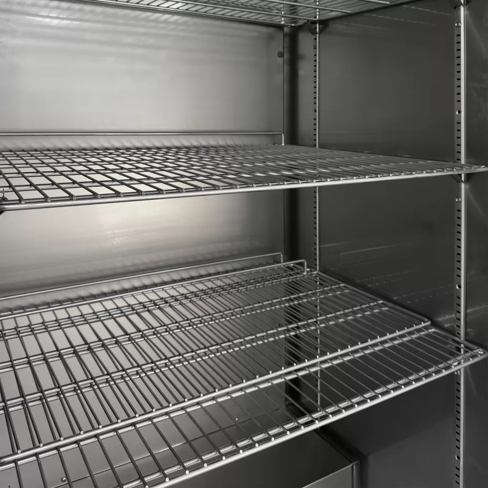 Mrazicí skříň UF-SS nabízí vysokou kvalitu a spolehlivost za konkurenceschopnou cenu. Má moderní design s odolným interiérem a exteriérem z nerezové oceli a integrovaným madlem po celé délce dvířek. Má ventilované chlazení a nastavitelné police GN2/1. Teplotu lze nastavit na snadno ovladatelném digitálním displeji termostatu. nerezový exteriér a interiér|nastavitelné police GN 2/1|ventilované chlazení|integrované madlo|plné dveře, lze měnit otevírání|digitální termostat a teplotní displej|nastavitelné nožky s pojezdovými válečky vzadu|zámek Mrazicí skříň z nerezové oceli