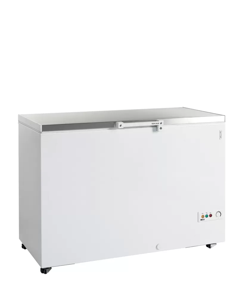 Řada mrazniček FR-SL nabízí spolehlivý výrobek za příznivou cenu. Dodává se v různých velikostech v bílé barvě a s pevným nerezovým víkem. Má interiér z oceli s bílým nátěrem a odtok pro odvádění vody při rozmrazování pro snadnou údržbu. Součástí jsou i silná kolečka pro lepší mobilitu. nerezové víko|rukojeť se zámkem|teploměr|vnitřní opláštění bílá lakovaná ocel|odtok vody při odmrazování|koše|pevná kolečka Pultová mraznička s plným nerezovým víkem.