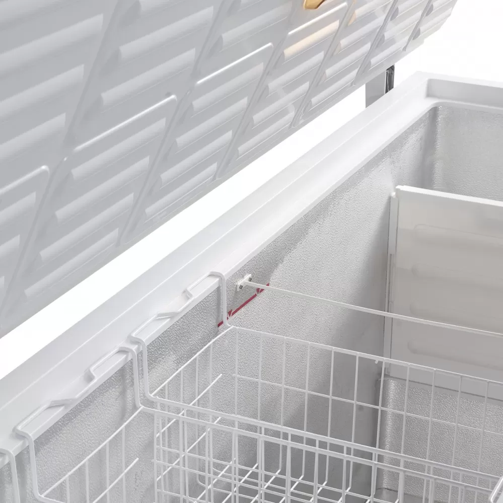 Řada mrazniček FR-SL nabízí spolehlivý výrobek za příznivou cenu. Dodává se v různých velikostech v bílé barvě a s pevným nerezovým víkem. Má interiér z oceli s bílým nátěrem a odtok pro odvádění vody při rozmrazování pro snadnou údržbu. Součástí jsou i silná kolečka pro lepší mobilitu. nerezové víko|rukojeť se zámkem|teploměr|vnitřní opláštění bílá lakovaná ocel|odtok vody při odmrazování|koše|pevná kolečka Pultová mraznička s plným nerezovým víkem.