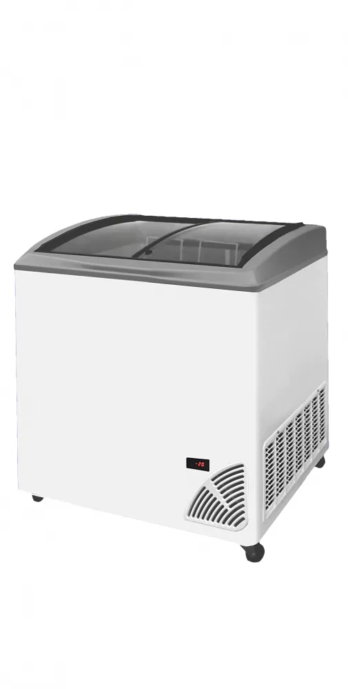 Prosklené mrazničky Byfal jsou k dostání ve třech bravách: červená, šedá, bíla a ve dvou provedeních: s rovným víkem a oblým víkem. Vyznačují se vynikajícími izolačními vlastnostmi. Vnější plášť je vyroben z pozinkovaného plechu, ten je z vnější strany potažen PVC, což jej činí odolnější proti korozi a poškrábání. Vnitřní stěny mrazničky jsou z Alu plechu o čistotě 99 % mimo dna, to je vyrobeno z ocelového plechu s povrchovou úpravou pro styk s potravinami. Vrchní krytí je z tvrzeného skla s termickou vrstvou,která zajistí lepší izolaci.Víko je opatřeno zámkem. Kompresor řídí digitální termostat s displejem, který znázorňuje aktuální teplotu. Ve standardní výbavě se nachází plný počet košů, do kterých je možno objednat dělící přepážky pro rozdělení mražených potravin. statické chlazení|vestavěný agregát|manuální odmrazování|digitální termostat s teploměrem|síla izolace stěny - 65 mm|bílé opláštění, uvnitř ALU|koše jsou součástí|zámek|kolečka Pultová mraznička s posuvným oblým víkem a digitálním termostatem s teploměrem