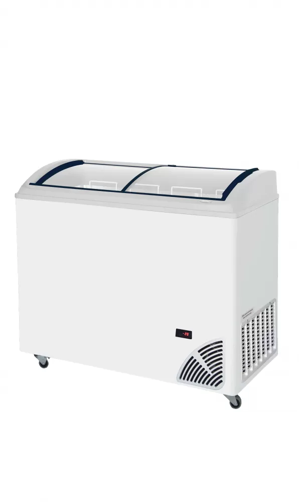 Prosklené mrazničky Byfal jsou k dostání ve třech bravách: červená, šedá, bíla a ve dvou provedeních: s rovným víkem a oblým víkem. Vyznačují se vynikajícími izolačními vlastnostmi. Vnější plášť je vyroben z pozinkovaného plechu, ten je z vnější strany potažen PVC, což jej činí odolnější proti korozi a poškrábání. Vnitřní stěny mrazničky jsou z Alu plechu o čistotě 99 % mimo dna, to je vyrobeno z ocelového plechu s povrchovou úpravou pro styk s potravinami. Vrchní krytí je z tvrzeného skla s termickou vrstvou,která zajistí lepší izolaci.Víko je opatřeno zámkem. Kompresor řídí digitální termostat s displejem, který znázorňuje aktuální teplotu. Ve standardní výbavě se nachází plný počet košů, do kterých je možno objednat dělící přepážky pro rozdělení mražených potravin. statické chlazení|vestavěný agregát|manuální odmrazování|digitální termostat s teploměrem|síla izolace stěny - 65 mm|bílé opláštění, uvnitř ALU|koše jsou součástí|zámek|kolečka Pultová mraznička s posuvným oblým víkem a digitálním termostatem s teploměrem