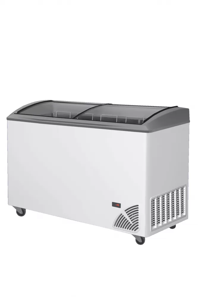 Prosklené mrazničky Byfal jsou k dostání ve třech bravách: červená, šedá, bíla a ve dvou provedeních: s rovným víkem a oblým víkem. Vyznačují se vynikajícími izolačními vlastnostmi. Vnější plášť je vyroben z pozinkovaného plechu, ten je z vnější strany potažen PVC, což jej činí odolnější proti korozi a poškrábání. Vnitřní stěny mrazničky jsou z Alu plechu o čistotě 99 % mimo dna, to je vyrobeno z ocelového plechu s povrchovou úpravou pro styk s potravinami. Vrchní krytí je z tvrzeného skla s termickou vrstvou,která zajistí lepší izolaci.Víko je opatřeno zámkem. Kompresor řídí digitální termostat s displejem, který znázorňuje aktuální teplotu. Ve standardní výbavě se nachází plný počet košů, do kterých je možno objednat dělící přepážky pro rozdělení mražených potravin. statické chlazení|vestavěný agregát|manuální odmrazování|digitální termostat s teploměrem|síla izolace stěny - 65 mm|bílé opláštění, uvnitř ALU|koše jsou součástí|zámek|kolečka Pultová mraznička s posuvným oblým víkem a digitálním termostatem s teploměrem
