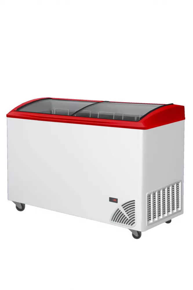 Prosklené mrazničky Byfal jsou k dostání ve třech bravách: červená, šedá, bíla a ve dvou provedeních: s rovným víkem a oblým víkem. Vyznačují se vynikajícími izolačními vlastnostmi. Vnější plášť je vyroben z pozinkovaného plechu, ten je z vnější strany potažen PVC, což jej činí odolnější proti korozi a poškrábání. Vnitřní stěny mrazničky jsou z Alu plechu o čistotě 99 % mimo dna, to je vyrobeno z ocelového plechu s povrchovou úpravou pro styk s potravinami. Vrchní krytí je z tvrzeného skla s termickou vrstvou,která zajistí lepší izolaci.Víko je opatřeno zámkem. Kompresor řídí digitální termostat s displejem, který znázorňuje aktuální teplotu. Ve standardní výbavě se nachází plný počet košů, do kterých je možno objednat dělící přepážky pro rozdělení mražených potravin. statické chlazení|vestavěný agregát|manuální odmrazování|digitální termostat s teploměrem|síla izolace stěny - 65 mm|bílé opláštění, uvnitř ALU|koše jsou součástí|zámek|kolečka Pultová mraznička s posuvným oblým víkem a digitálním termostatem s teploměrem
