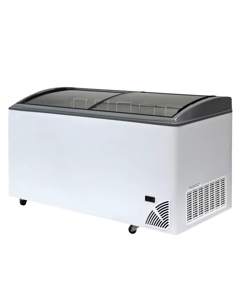 Prosklené mrazničky Byfal jsou k dostání ve třech bravách: červená, šedá, bíla a ve dvou provedeních: s rovným víkem a oblým víkem. Vyznačují se vynikajícími izolačními vlastnostmi. Vnější plášť je vyroben z pozinkovaného plechu, ten je z vnější strany potažen PVC, což jej činí odolnější proti korozi a poškrábání. Vnitřní stěny mrazničky jsou z Alu plechu o čistotě 99 % mimo dna, to je vyrobeno z ocelového plechu s povrchovou úpravou pro styk s potravinami. Vrchní krytí je z tvrzeného skla s termickou vrstvou,která zajistí lepší izolaci.Víko je opatřeno zámkem. Kompresor řídí digitální termostat s displejem, který znázorňuje aktuální teplotu. Ve standardní výbavě se nachází plný počet košů, do kterých je možno objednat dělící přepážky pro rozdělení mražených potravin. statické chlazení|vestavěný agregát|manuální odmrazování|digitální termostat s teploměrem|síla izolace stěny - 65 mm|bílé opláštění, uvnitř ALU|koše jsou součástí|zámek|kolečka Pultová mraznička s posuvným oblým víkem a digitálním termostatem s teploměrem