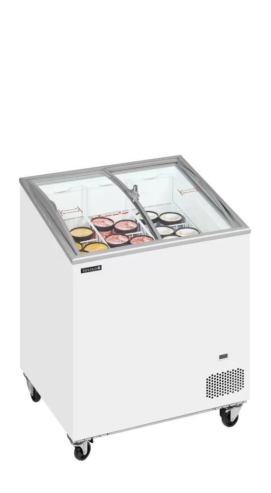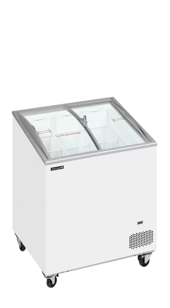 Standardní řada pultových mrazniček IC-SCEB nabízí stabilní a spolehlivě konstruované zařízení za příznivou cenu. Je skvělou volbou pro začínající podniky, sezónní prodej apod. Dodává se s oblými prosklenými posuvnými víky pro lepší viditelnost produktů a s kompletní sadou košů (kromě nejmenšího modelu), připravených k naplnění lahodnou zmrzlinou. Za účelem snadné manipulace je mraznička vybavena robustními kolečky pro vysokou zátěž. náklon výstavní plochy pro lepší prezentaci|oblá posuvná víka se zámkem|drátěné koše, bílé|ideální pro reklamní polepy|digitální teploměr|kolečka s brzdou|klimatická třída 5 - vysoký výkon i v teplém prostředí Pultová mraznička s proskleným oblým víkem