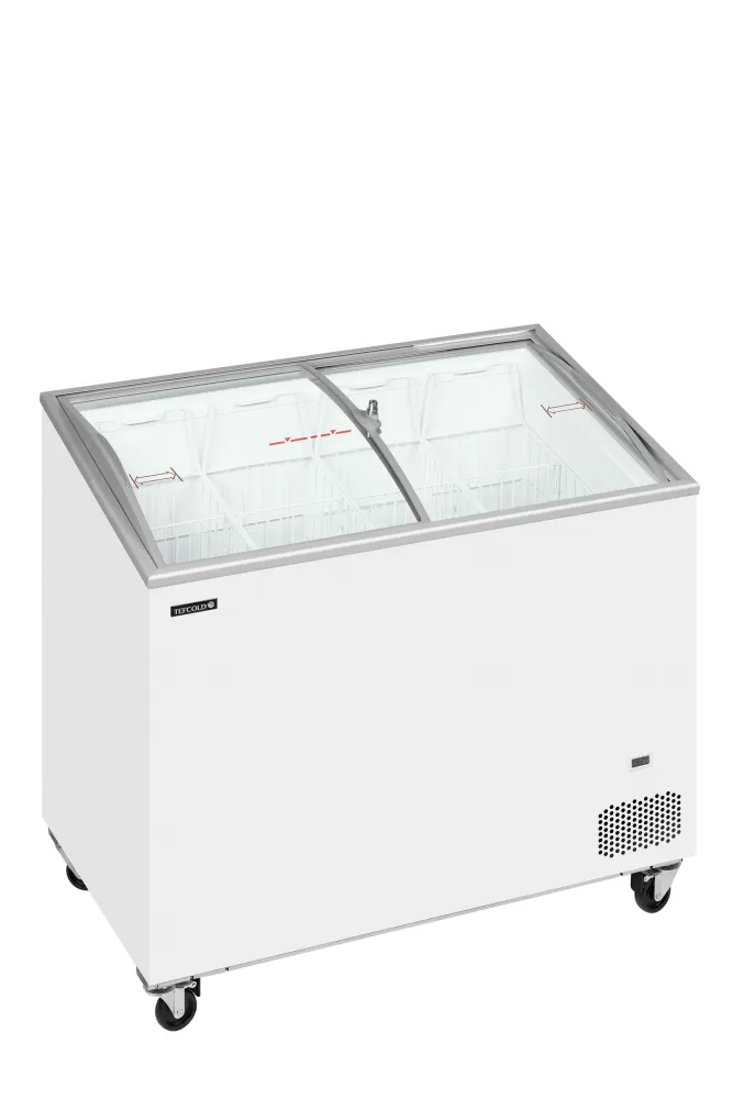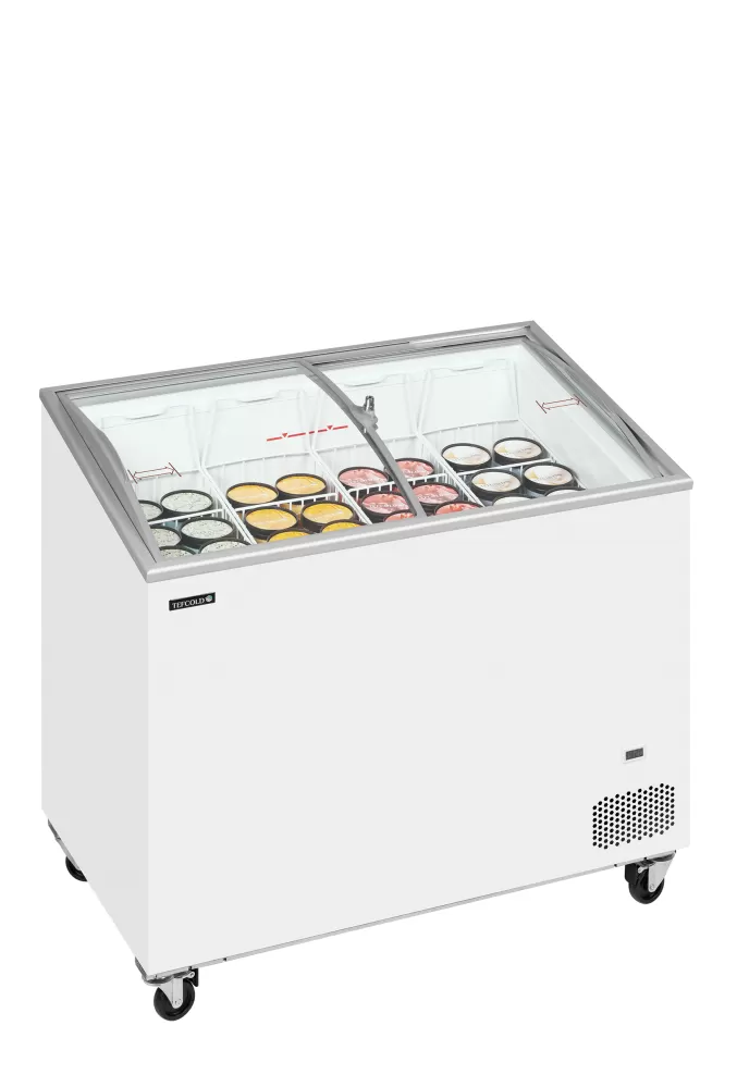 Standardní řada pultových mrazniček IC-SCEB je skvělou volbou pro začínající podniky, sezónní prodej apod. Dodává se s oblými prosklenými posuvnými víky pro lepší viditelnost produktů a s kompletní sadou košů (kromě nejmenšího modelu), připravených k naplnění lahodnou zmrzlinou. náklon výstavní plochy pro lepší prezentaci|oblá posuvná víka se zámkem|zahrnuje plnou sadu košů|ideální pro reklamní polepy|digitální teploměr|kolečka s brzdou|klimatická třída 5 - vysoký výkon i v teplém prostředí Pultová mraznička s proskleným oblým víkem