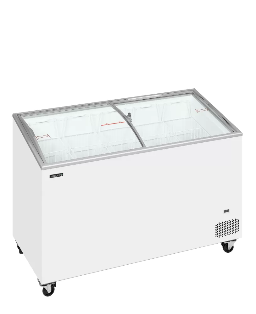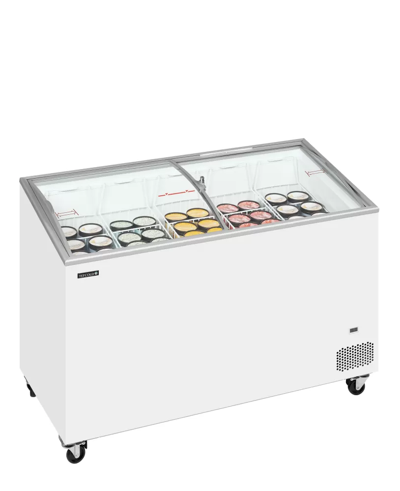 Standardní řada pultových mrazniček IC-SCEB nabízí stabilní a spolehlivě konstruované zařízení za příznivou cenu. Je skvělou volbou pro začínající podniky, sezónní prodej apod. Dodává se s oblými prosklenými posuvnými víky pro lepší viditelnost produktů a s kompletní sadou košů (kromě nejmenšího modelu), připravených k naplnění lahodnou zmrzlinou. Za účelem snadné manipulace je mraznička vybavena robustními kolečky pro vysokou zátěž. náklon výstavní plochy pro lepší prezentaci|oblá posuvná víka se zámkem|zahrnuje plnou sadu košů|ideální pro reklamní polepy|digitální teploměr|kolečka s brzdou|klimatická třída 5 - vysoký výkon i v teplém prostředí Pultová mraznička s proskleným posuvným víkem
