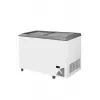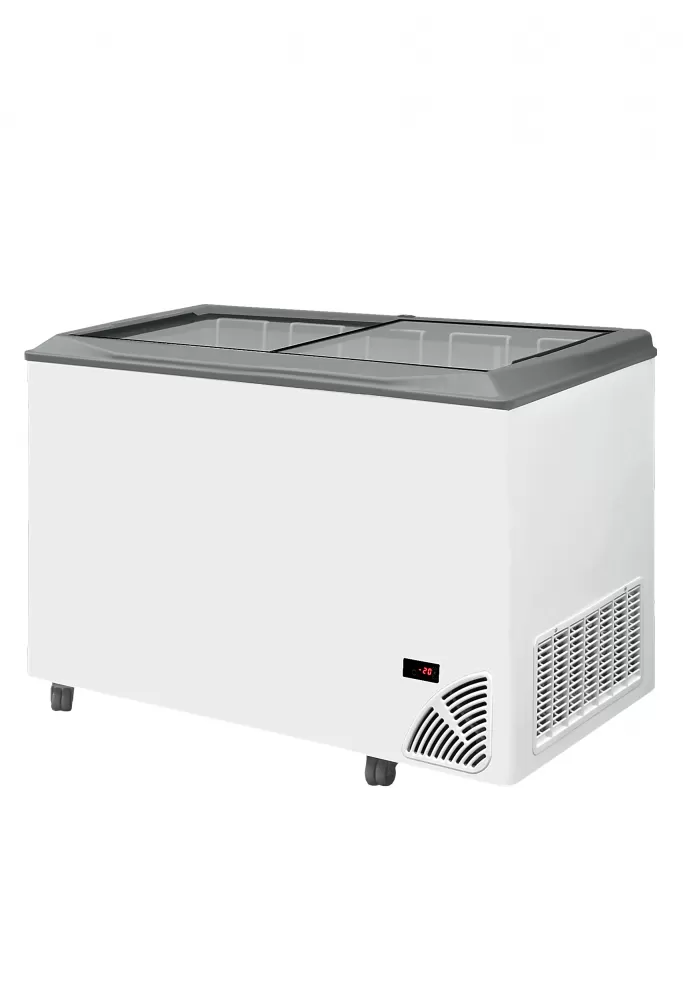 Prosklené mrazničky Byfal jsou k dostání ve třech bravách: červená, šedá, bíla a ve dvou provedeních: s rovným víkem a oblým víkem. Vyznačují se vynikajícími izolačními vlastnostmi. Vnější plášť je vyroben z pozinkovaného plechu, ten je z vnější strany potažen PVC, což jej činí odolnější proti korozi a poškrábání. Vnitřní stěny mrazničky jsou z Alu plechu o čistotě 99 % mimo dna, to je vyrobeno z ocelového plechu s povrchovou úpravou pro styk s potravinami. Vrchní krytí je z tvrzeného skla s termickou vrstvou,která zajistí lepší izolaci.Víko je opatřeno zámkem. Kompresor řídí digitální termostat s displejem, který znázorňuje aktuální teplotu. Ve standardní výbavě se nachází plný počet košů, do kterých je možno objednat dělící přepážky pro rozdělení mražených potravin. statické chlazení|vestavěný agregát|manuální odmrazování|digitální termostat s teploměrem|síla izolace stěny - 65 mm|bílé opláštění, uvnitř ALU|koše jsou součástí|zámek|kolečka Pultová mraznička s posuvným rovným víkem a digitálním termostatem s teploměrem