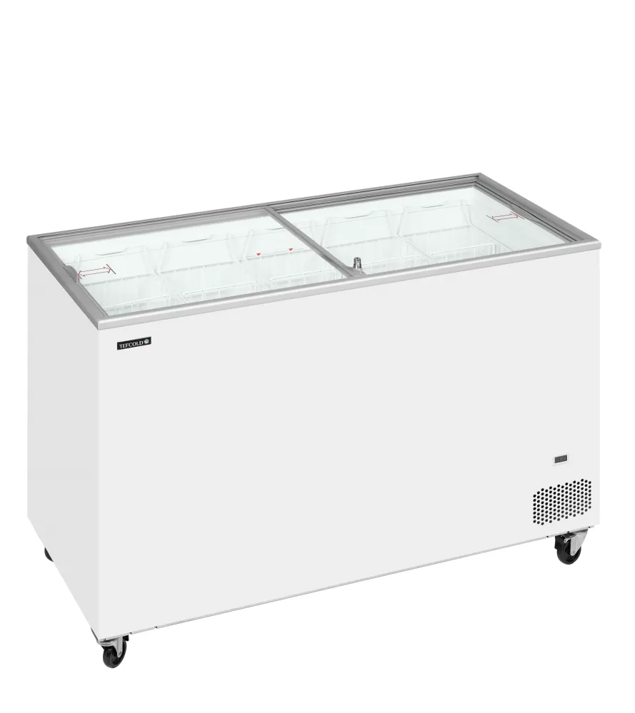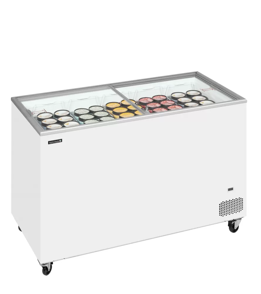 Standardní řada pultových mrazniček IC nabízí stabilní a spolehlivě konstruované zařízení za příznivou cenu. Je skvělou volbou pro začínající podniky, sezónní prodej apod. Dodává se s rovnými prosklenými posuvnými víky pro lepší viditelnost produktů a s kompletní sadou košů připravených k naplnění např. lahodnou zmrzlinou. Za účelem snadné manipulace je mraznička vybavena robustními kolečky pro vysokou zátěž. rovná posuvná prosklená víka se zámkem|ideální pro reklamní polep|zahrnuje plnou sadu košů|digitální teploměr|kolečka s brzdou|klimatická třída 5 - vysoký výkon i v teplém prostředí Pultová mraznička s proskleným rovným víkem