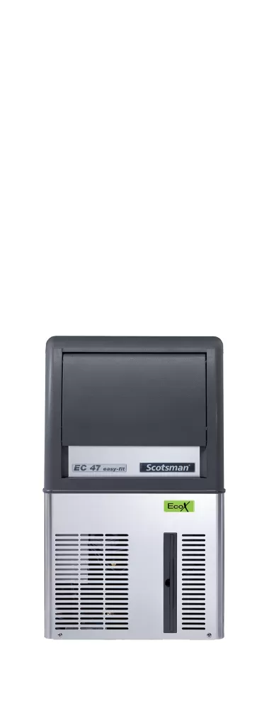 Výrobník ledu řady EC s odpadovým čerpadlem, chlazený vzduchem, produkující kloboučkový led.  Velikost ledu M: 20 g / Ø 30 mm / V 34 mm. Tyto výrobníky mají systém rychlého odkapávání ledu, který poskytuje zkrácení cyklu pro odebírání ledu a redukuje spotřebu energie. Elektronická kontrola zajišťuje, že se kvalita ledu nezmění ani v případě, že se v průběhu času změní teplota vody nebo okolního prostředí. Technologie AgION zabraňuje vzniku bakterií a nepříjemných pachů uvnitř zařízení. Funkce Xsafe u modelů ECM OX - speciální sanitační systém s UV lampou ničí až 99 % virů a bakterií. Vestavěné odpadové čerpadlo je schopno čerpat přebytečnou zbytkovou vodu až do vzdálenosti 15 metrů. nástřikový systém vytváří jednotlivé čiré kostky ledu|Stroj na kostky ledu Gourmet, velikost M|úsporný systém chlazení vzduchu|výrobník ledu s vestavěným zásobníkem|Sanitační systém Xsafe|exteriér z nerezové oceli|odpadové čerpadlo pro bezpečný odvod vody|Výstražná kontrolka vás upozorní na ucpaný filtr Výrobník kloboučkového ledu řady EC