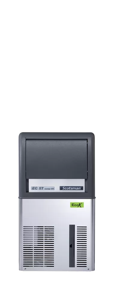 Výrobník ledu řady EC s odpadovým čerpadlem, chlazený vzduchem, produkující kloboučkový led.  Velikost ledu M: 20 g / Ø 30 mm / V 34 mm. Tyto výrobníky mají systém rychlého odkapávání ledu, který poskytuje zkrácení cyklu pro odebírání ledu a redukuje spotřebu energie. Elektronická kontrola zajišťuje, že se kvalita ledu nezmění ani v případě, že se v průběhu času změní teplota vody nebo okolního prostředí. Technologie AgION zabraňuje vzniku bakterií a nepříjemných pachů uvnitř zařízení. Funkce Xsafe u modelů ECM OX - speciální sanitační systém s UV lampou ničí až 99 % virů a bakterií. Vestavěné odpadové čerpadlo je schopno čerpat přebytečnou zbytkovou vodu až do vzdálenosti 15 metrů. nástřikový systém vytváří jednotlivé čiré kostky ledu|Stroj na kostky ledu Gourmet, velikost M|úsporný systém chlazení vzduchu|výrobník ledu s vestavěným zásobníkem|Sanitační systém Xsafe|exteriér z nerezové oceli|odpadové čerpadlo pro bezpečný odvod vody|Výstražná kontrolka vás upozorní na ucpaný filtr Výrobník kloboučkového ledu řady EC