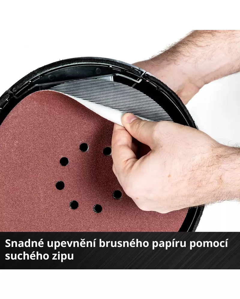 • Uchycení brusného papíru: Snadné a rychlé pomocí suchého zipu.