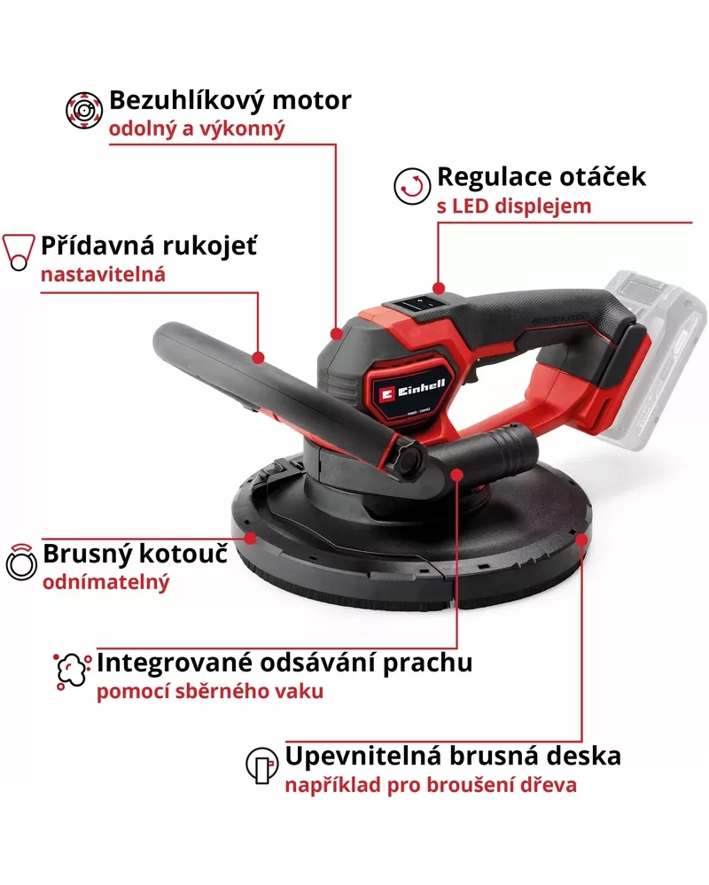 Aku bruska na sádrokarton 18V/bez aku TP-DWS 18/225 Li BL Solo Einhell 4259995