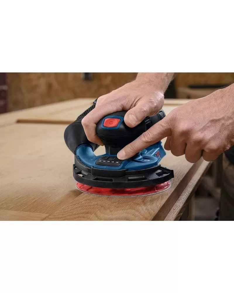 Excentrická bruska GEX 12V-150-3 Professional s nízkou konstrukcí nářadí, blízko obrobku, nabízí optimální kontrolu. Dobře vyvážená ergonomie a kompaktnost usnadňují použití jednou nebo oběma rukama. Bezuhlíkový motor a zdvih 3 mm zajišťují rychlý postup práce a vysokou kvalitu povrchu. Integrované Venturiho vzduchové kanály a integrovaný ventilátor umožňují vynikající odsávání prachu. Nářadí můžete ovládat intuitivně díky jednoduchému rozhraní člověk-stroj. Sáček na prach zajišťuje efektivní zachycování prachu.