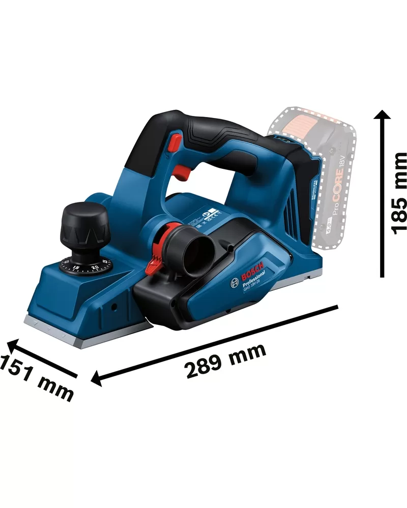 GHO 185-LI Professional zaručuje díky své přesné konstrukci konzistentně rovnou plochu v průběhu celého pracovního procesu pro dokonalejší spojování. Akumulátorový hoblík umožňuje snadné hoblování o hloubce 2,6 mm na jakémkoli dřevěném materiálu. Jeho výkon je srovnatelný s výkonem síťového nářadí. Je vybaven vylepšeným odsáváním prachu přes příslušný otvor s dvojitým sekáním a snadnou výměnou nože bez zarovnání pro snadné dosažení konzistentní roviny.