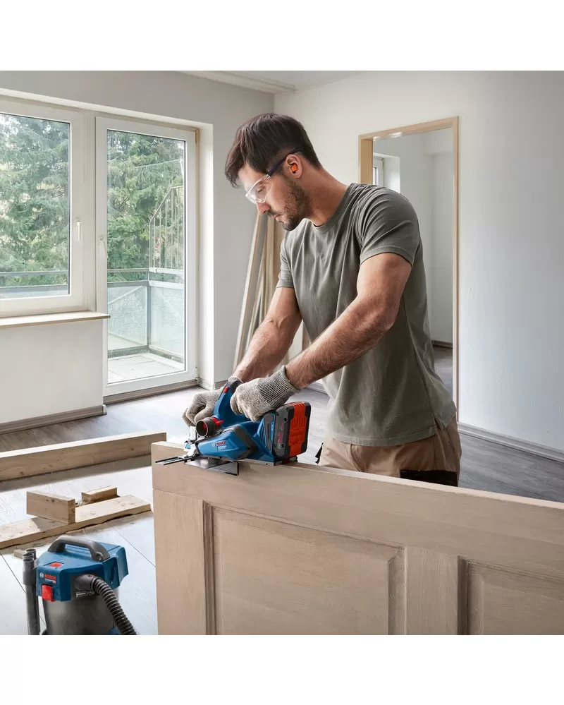 GHO 185-LI Professional je vhodná na hoblování přírodních i opracovaných dřevěných materiálů a na odstraňování materiálů pro vytvoření rovného povrchu.