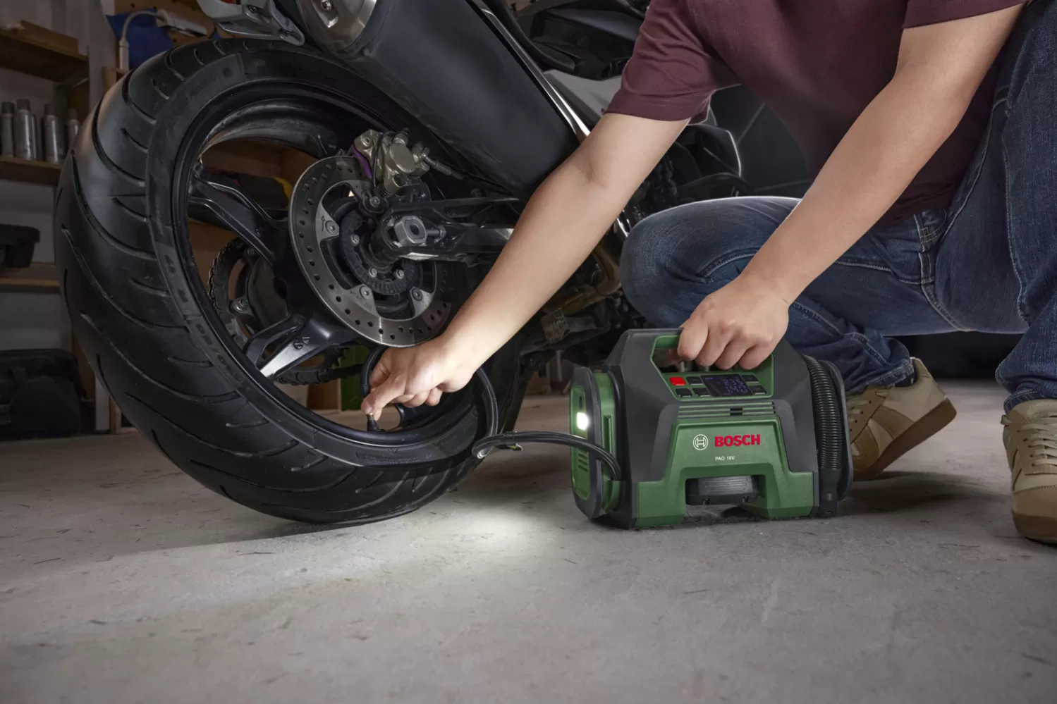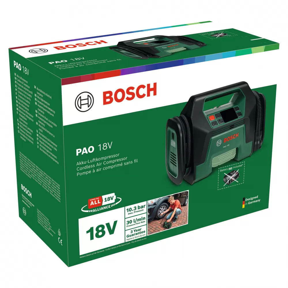 Aku hustilka bez aku 18V PAO 18 V Bosch 0603947400 Výkonný akumulátorový vzduchový kompresor pro pneumatiky a velké nafukovací čluny. Přínos pro… Celý popis