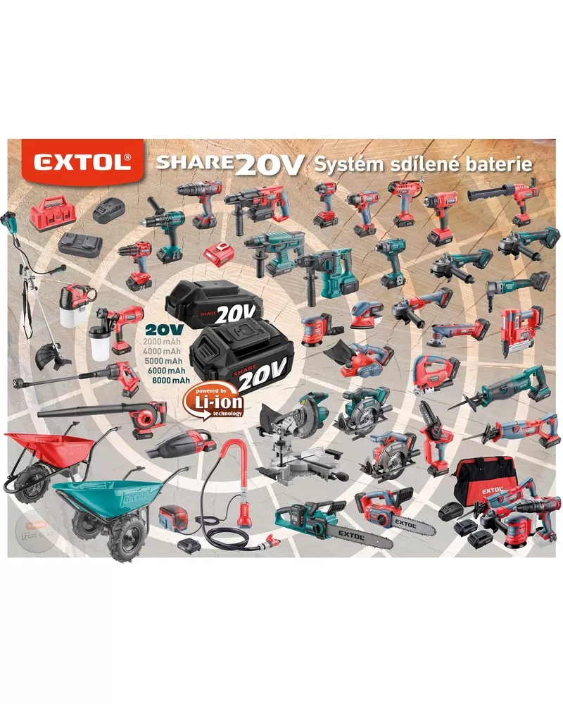 • Akumulátor lze použít ve všech typech nářadí řady EXTOL SHARE20V.
